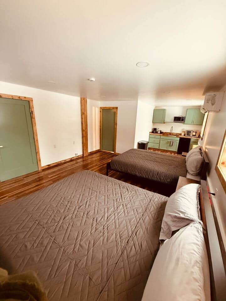Stay in the heart of Cooke City at the Wolverine Room, a modern mountain studio just four miles from Yellowstone’s Northeast Entrance. This high-end retreat features two comfortable queen beds, a beautifully finished bathroom, and a premium kitchenette with thoughtful touches throughout. Perfect for couples, friends, or small families, it’s a stylish and convenient basecamp for your Montana adventure.